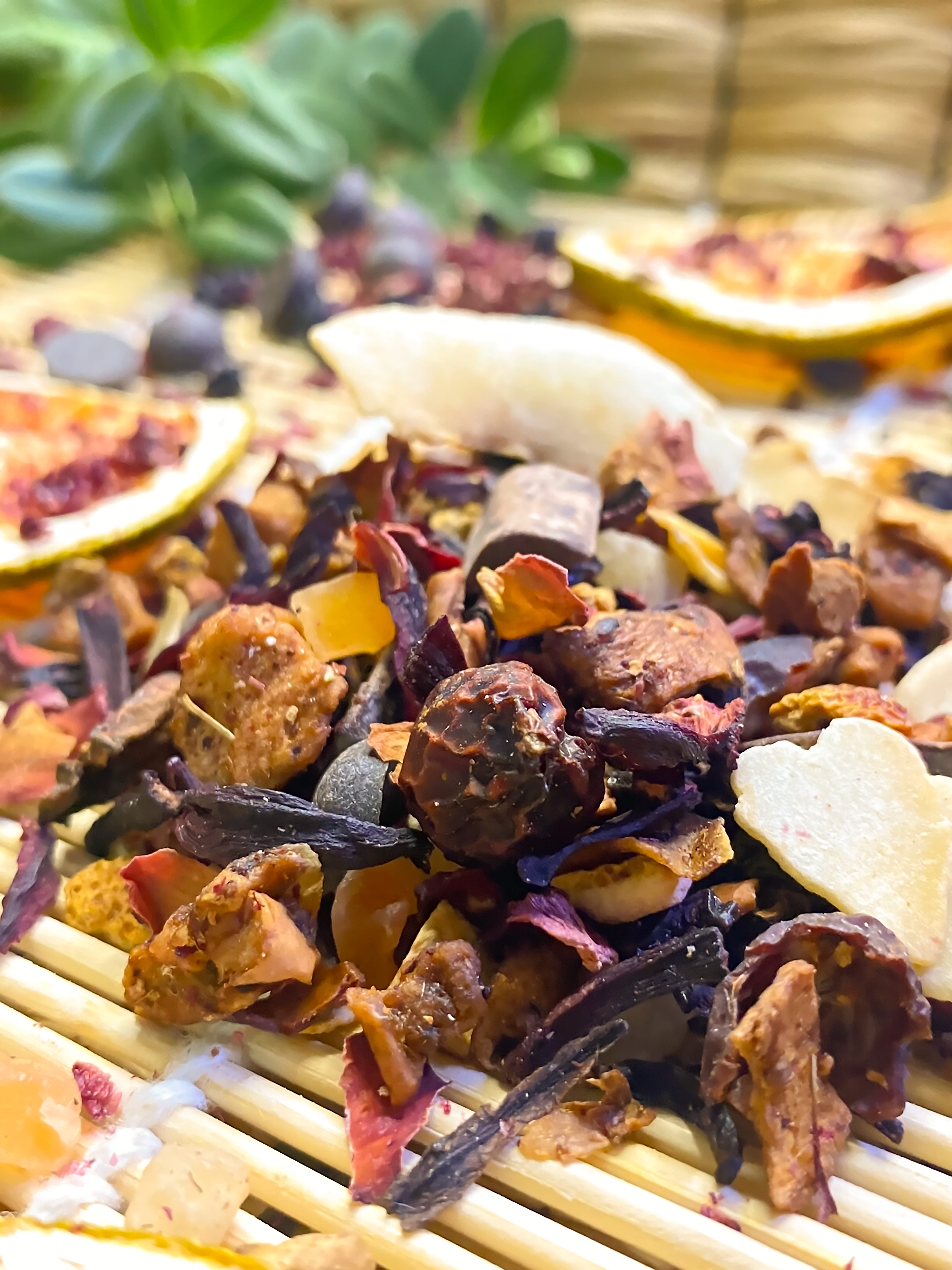 De aroma cálido y perfil dulce y equilibrado; rica en antioxidantes, puede aportar sensación de bienestar, energía suave y apoyo digestivo ligero, siendo naturalmente libre de cafeína. Ideal tanto caliente para resaltar su cuerpo y profundidad como fría para una experiencia refrescante.