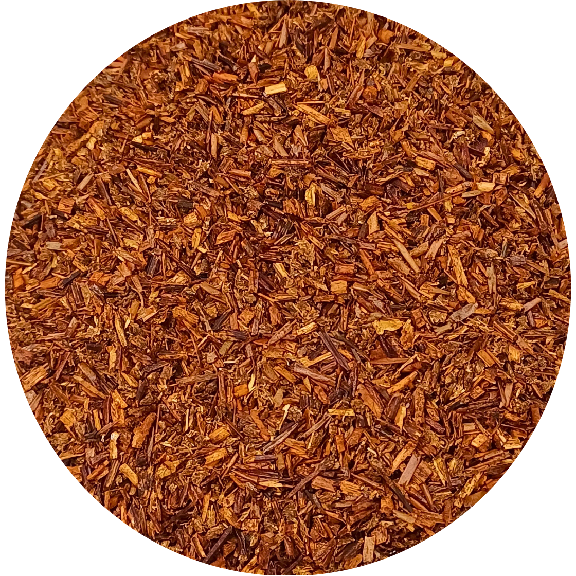 Infusión pura de rooibos, de sabor naturalmente dulce, cuerpo redondo y notas cálidas ligeramente terrosas; rica en antioxidantes como la aspalatina, contribuye al bienestar general, al equilibrio metabólico y al apoyo en la regulación de la glucosa dentro de un estilo de vida saludable, además de aportar potencial antiinflamatorio; suave y reconfortante, ayuda a la digestión y favorece la relajación sin generar estimulación, ya que es naturalmente libre de cafeína; ideal para disfrutar en cualquier momento del día, tanto caliente como fría.