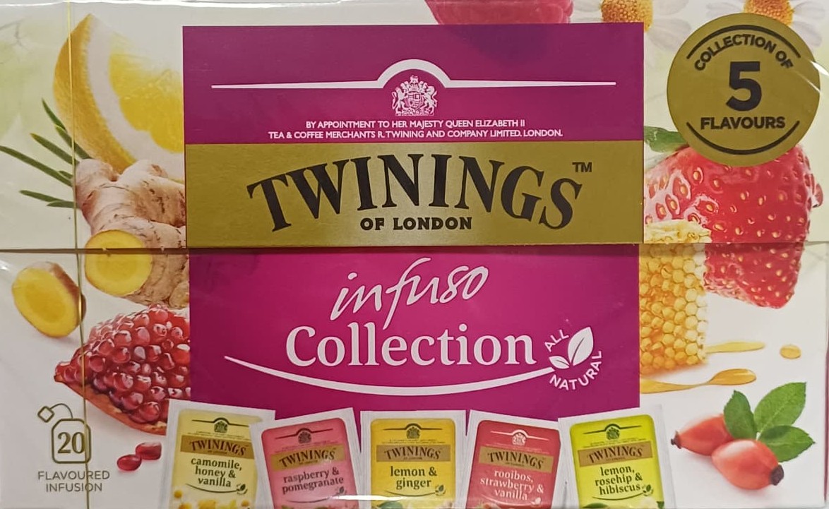 20 bolsitas con infusiones de 5 sabores (4 bolsitas de cada sabor):